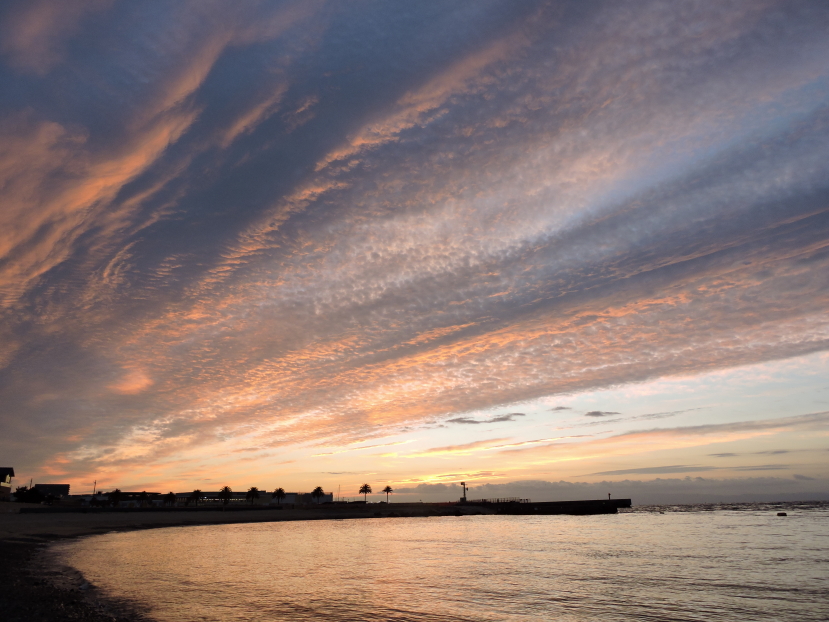 朝焼けの神戸舞子浜。11月18日。定点観測者が撮影しました。